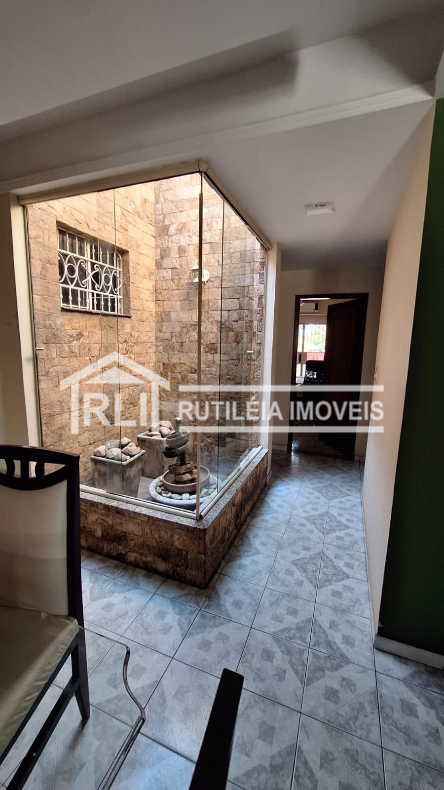 O imóvel possui 3 quartos, sendo um deles suíte, sala de estar, sala de jantar, jardim de inverno, cozinha, banheiro social, Varanda na frente e fundos, quintal amplo, vaga de garagem e duas lojas comerciais.
