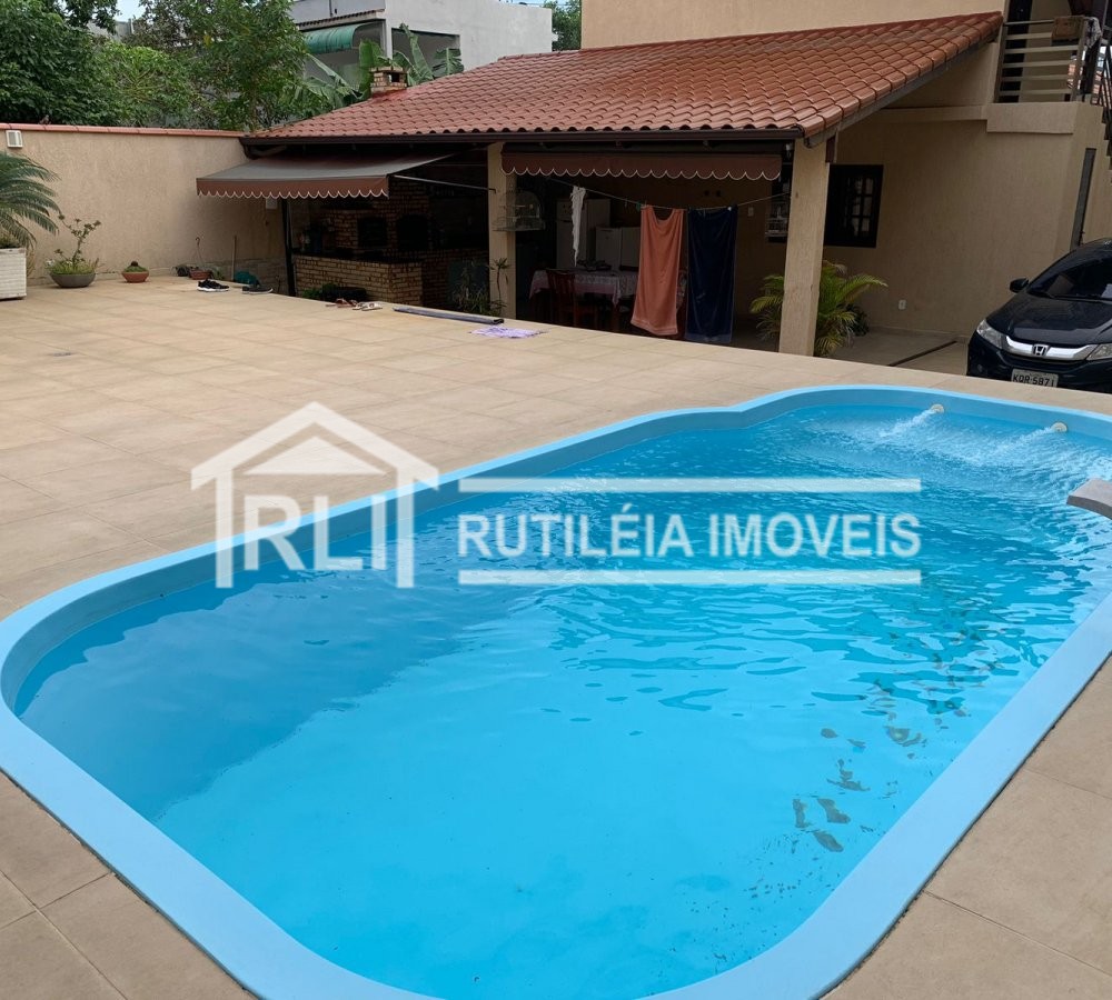 Rutileia Imóveis vende excelente casa no Centro de Tanguá, com 3 quartos sendo um deles suíte, sala, cozinha, copa, banheiro social, area de serviço, varanda, vaga de garagem para 3 carros, espaço gourmet com churrasqueira a carvão, banheiro social, piscina.
